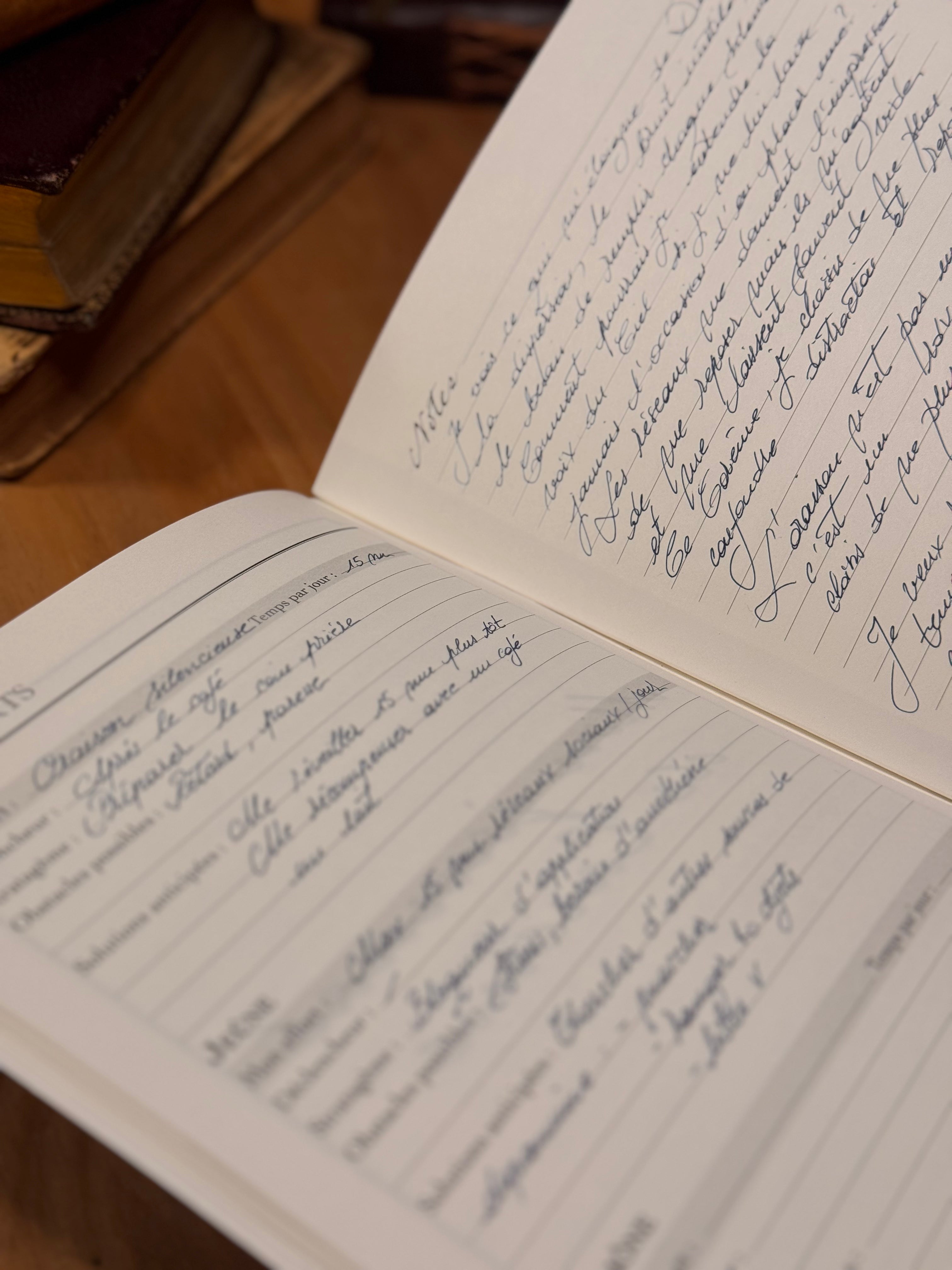 Augustine sort une série de cahiers magiques pour améliorer son écriture.